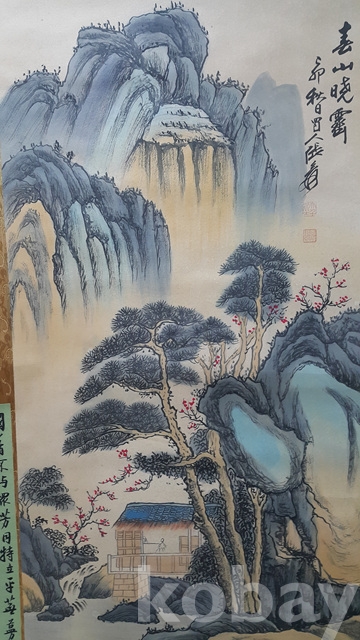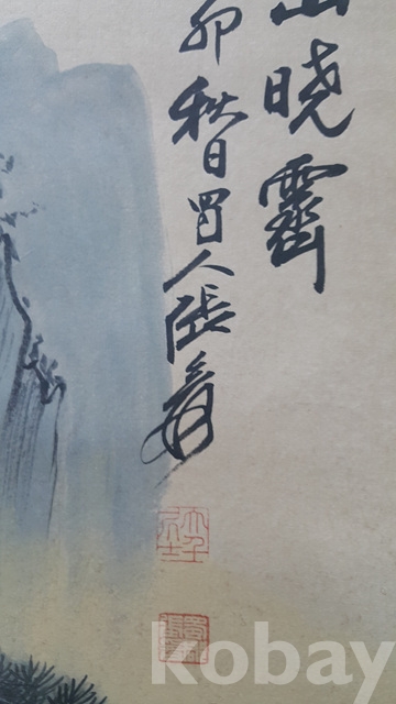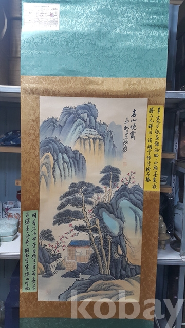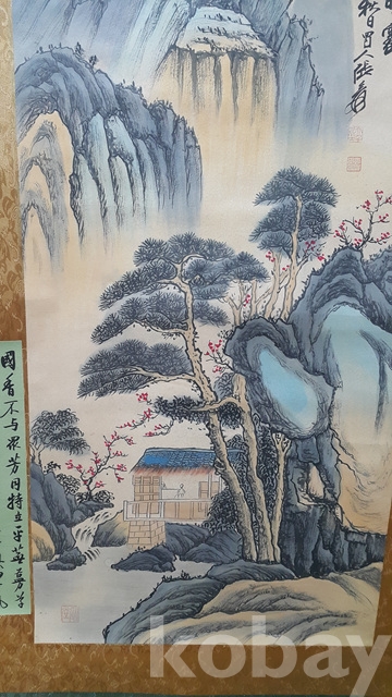 w-15.장대천의 산수도족자(수공으로그린그림)미감정