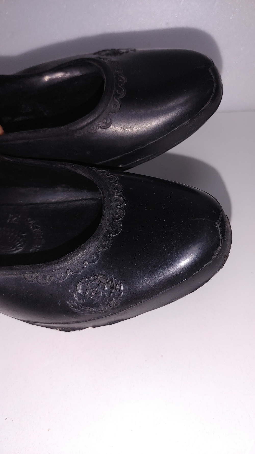 추억의 여자 어린이 타이야표 검정 꽃고무신 입니다
