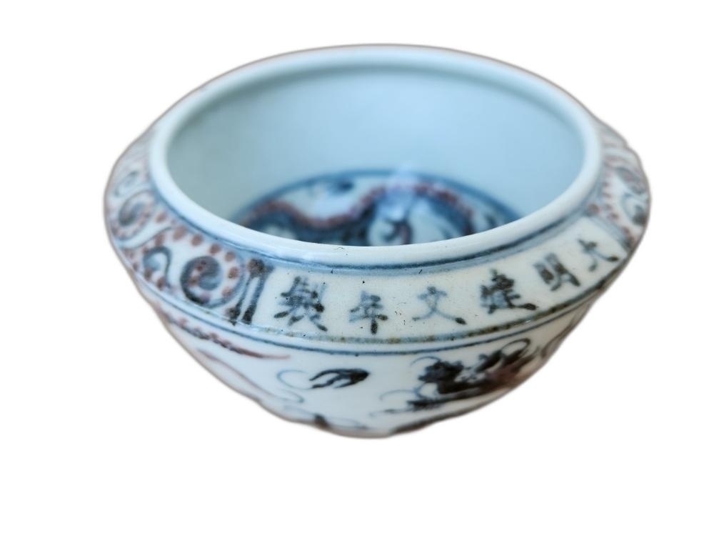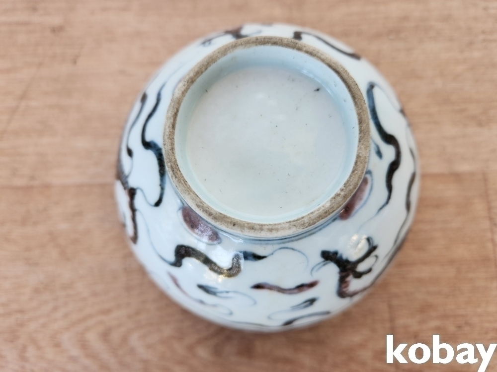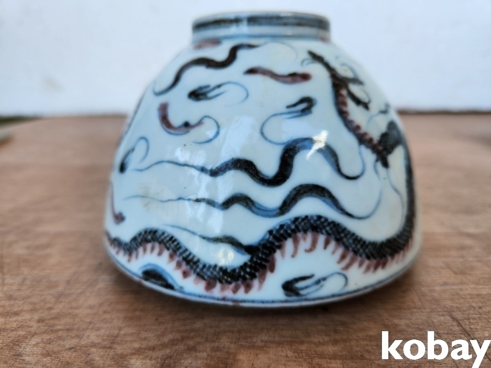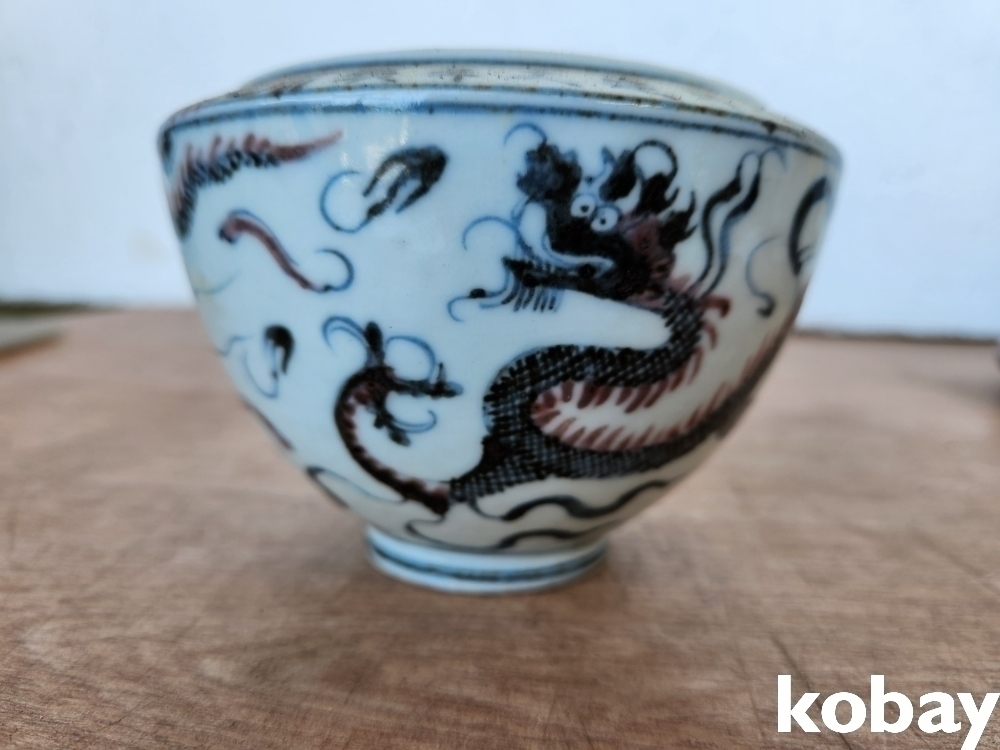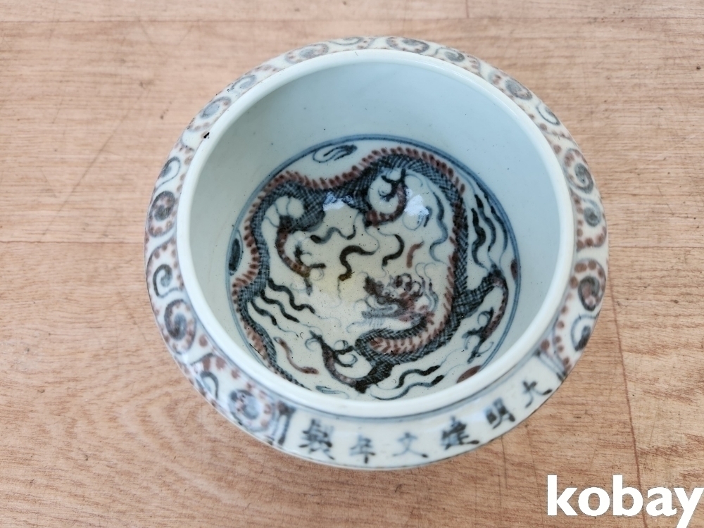 용 그림이 안과 밖으로 있는 필새 도자기 입니다.