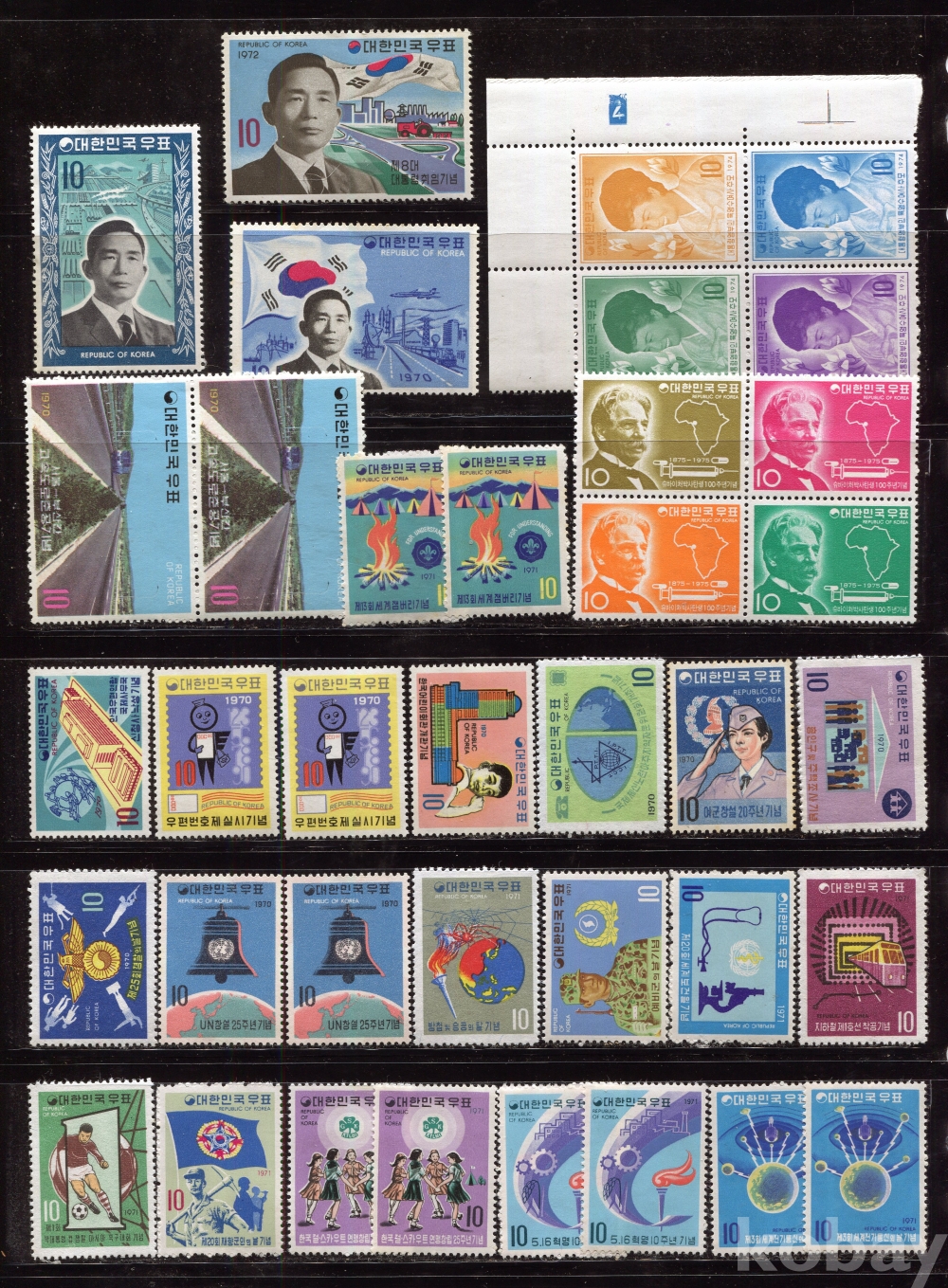 - [우표] 1970년대 초반 미사용 우표/블록 모음 (All MNH : Mint Not Hinged : 뒷면 힌지자국없이 깨끗한 상태)