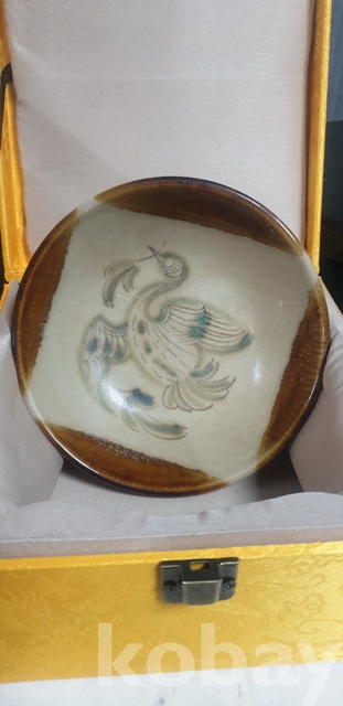 b-100.고급케이스에든 오래된 수작업으로만든송대 새문양대접