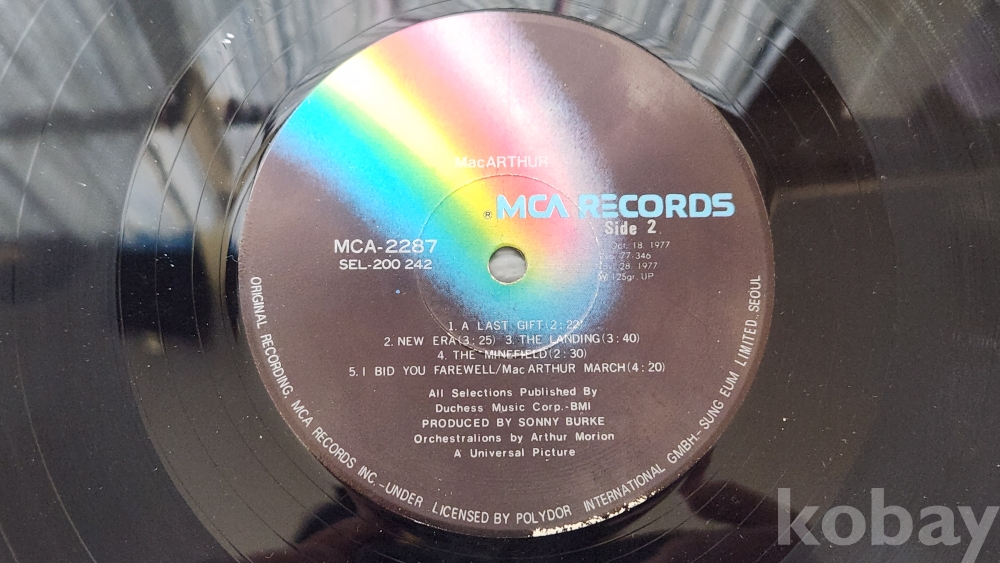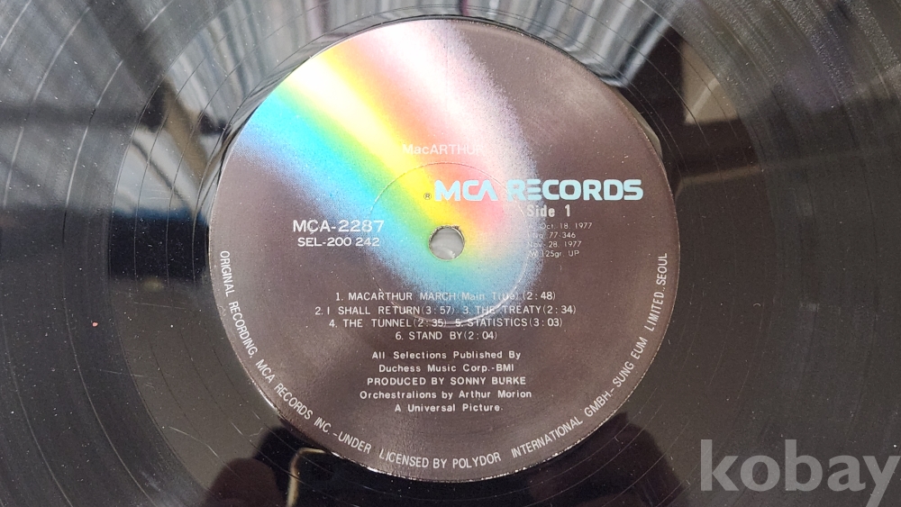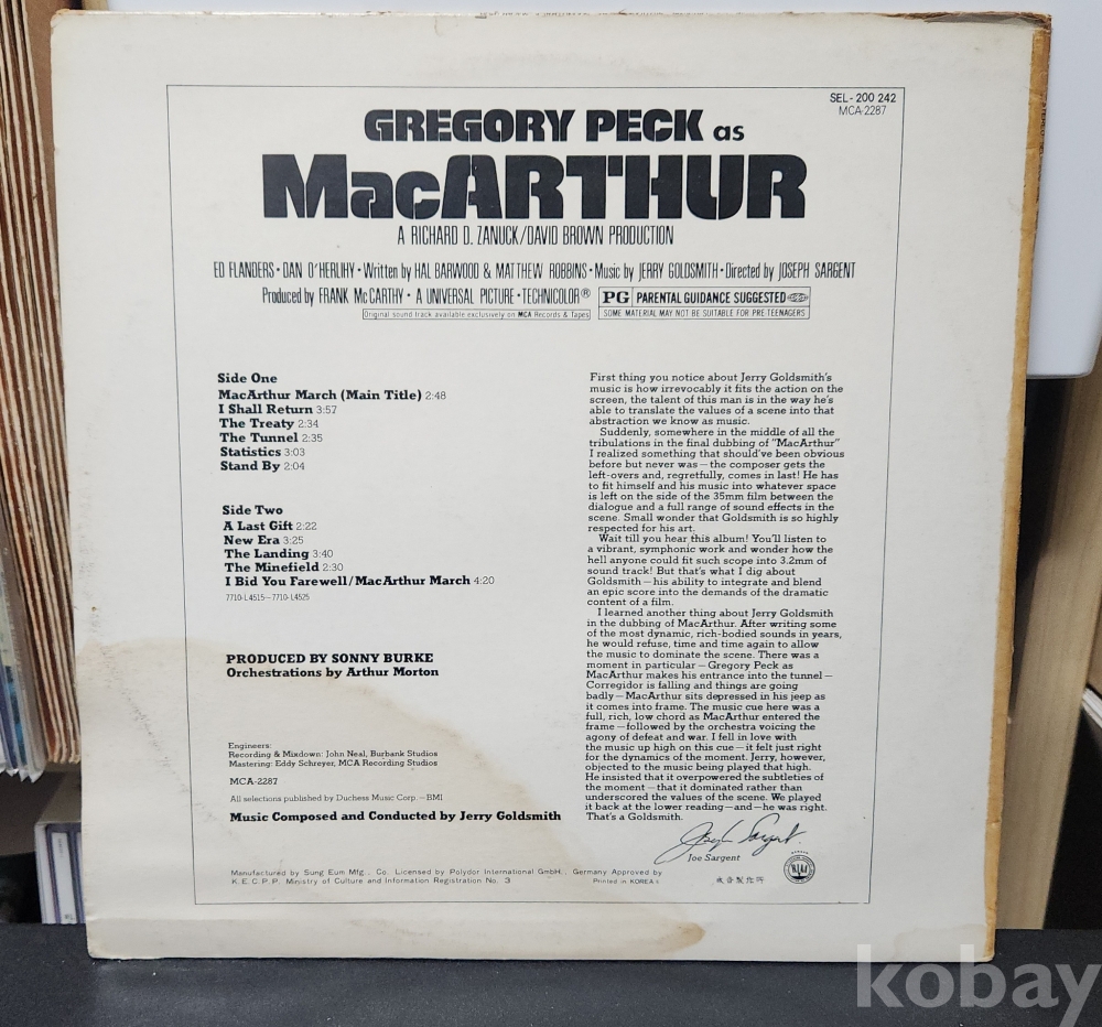 그레고리 펙 주연의 영화 '맥아더'의 오리지널 사운드트랙 라이센스 음반입니다.