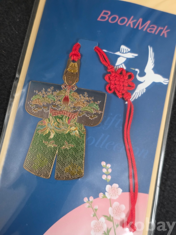 (((BooMark))) 매듭달린 일본 귀족가문 "오히나상" 모습 24k Gold Plating 금속 북키퍼 (책갈피)(미사용)