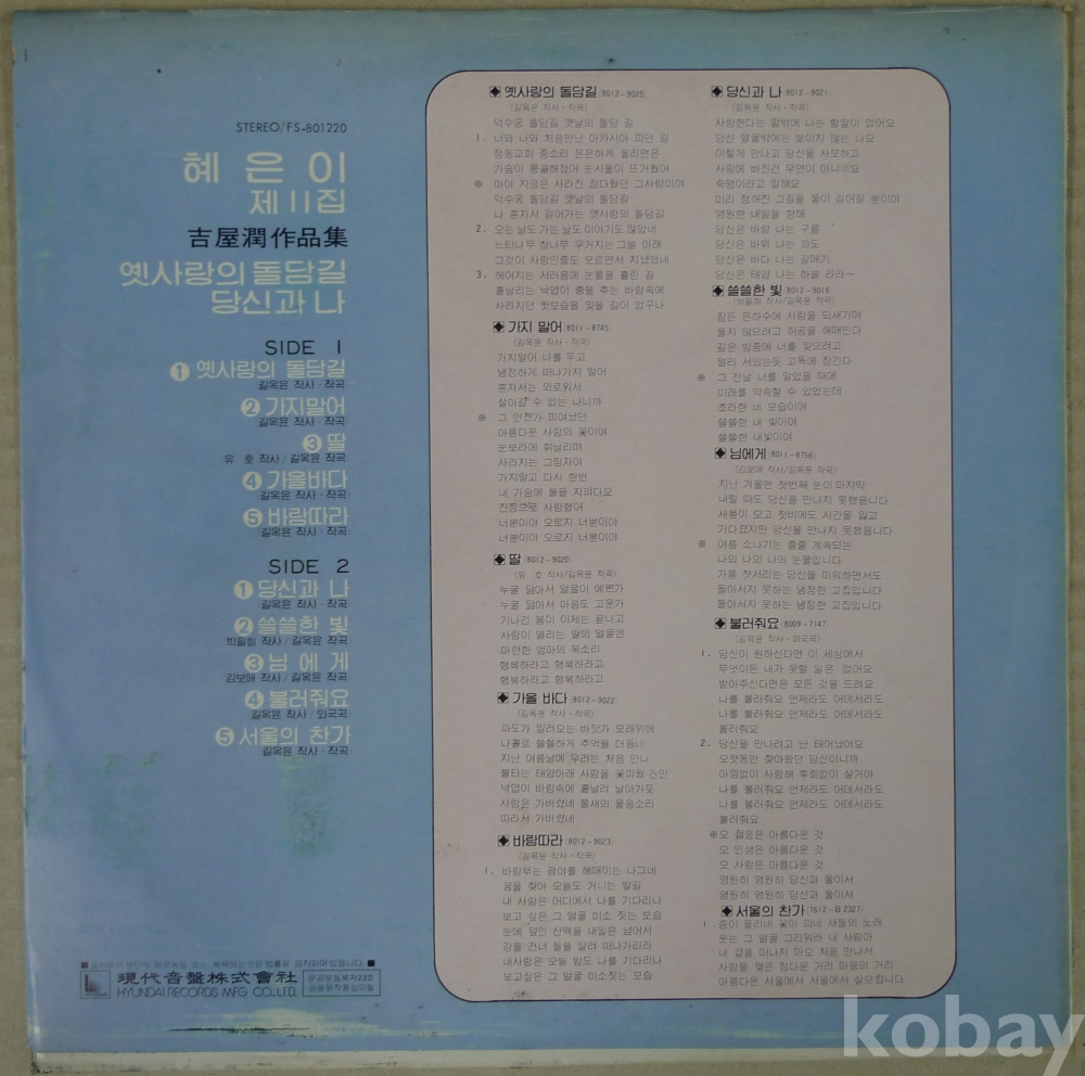 1980년 가수 혜은이 VOL.11 음반 LP