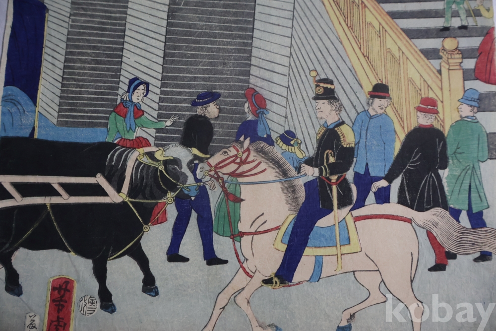 우타가와 요시토라 목판화 원본 19세기 명화 /요코하마 에 white 104//0086