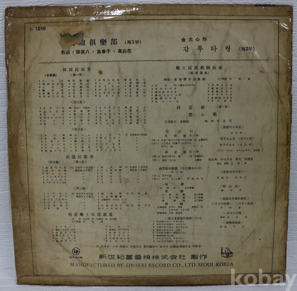 | 자켓상태 | G : 눈에 띄는 손상, 테이프, 필기 존재 | 음반상태 | G : 눈에 띄는 스크래치, 튐 또는 노이즈 발생 | 발매정보 | 초반 | 가사지여부 | 무 |