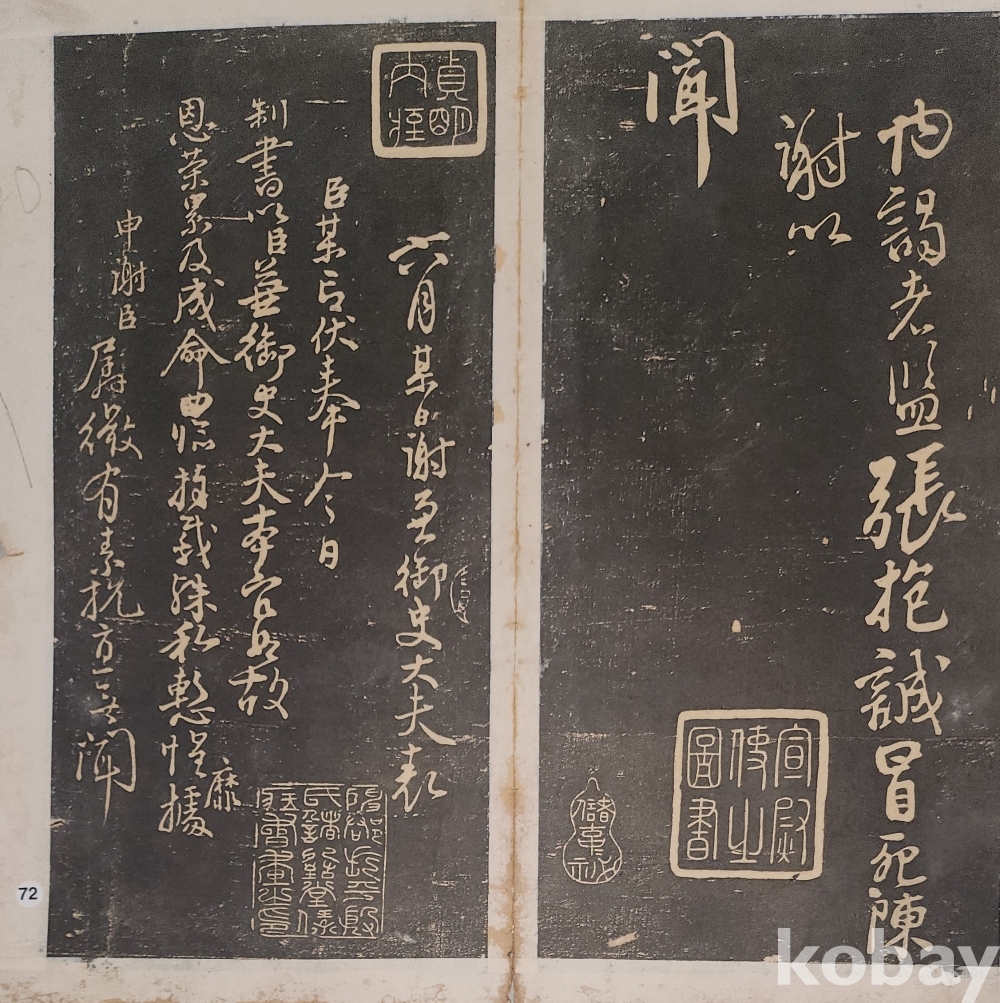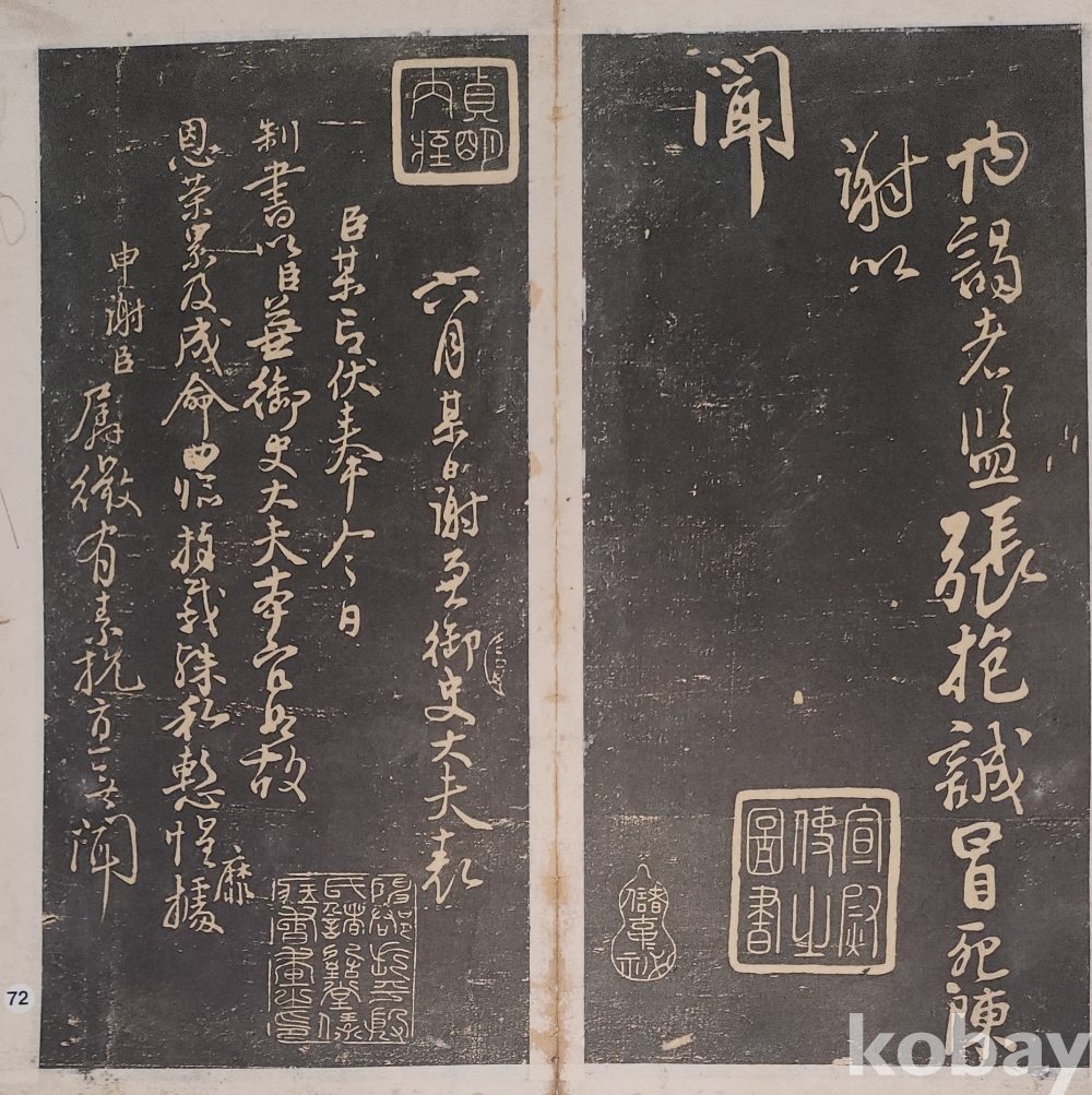 가리개 형식으로 양쪽에 탁본(拓本)이 붙어 있읍니다,