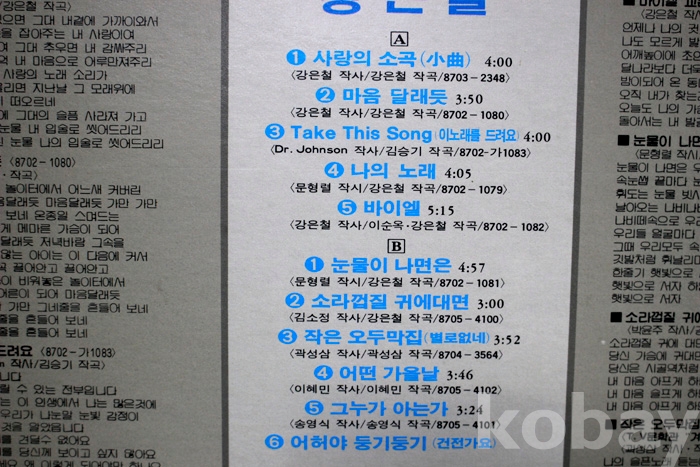 수록 곡 목은 사진을 참조하시기 바랍니다