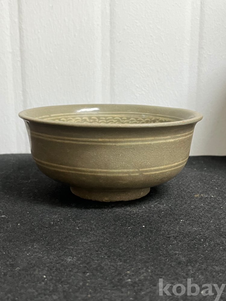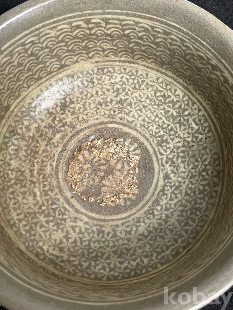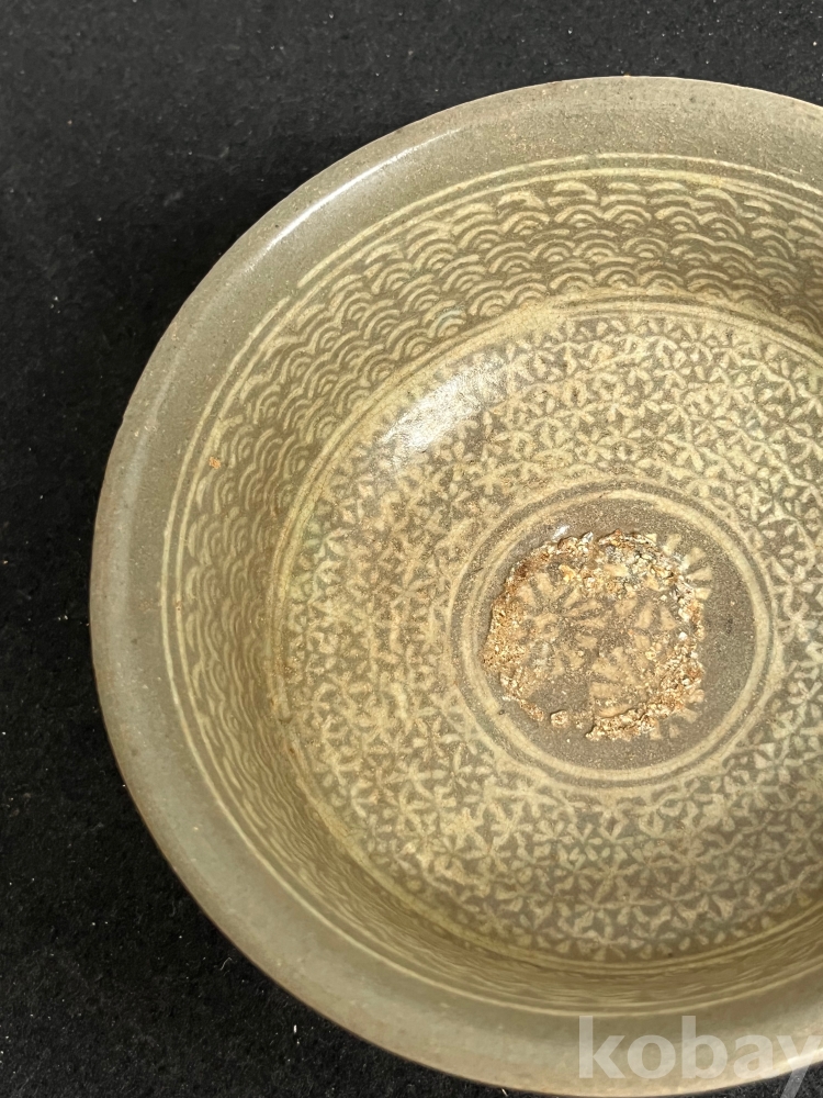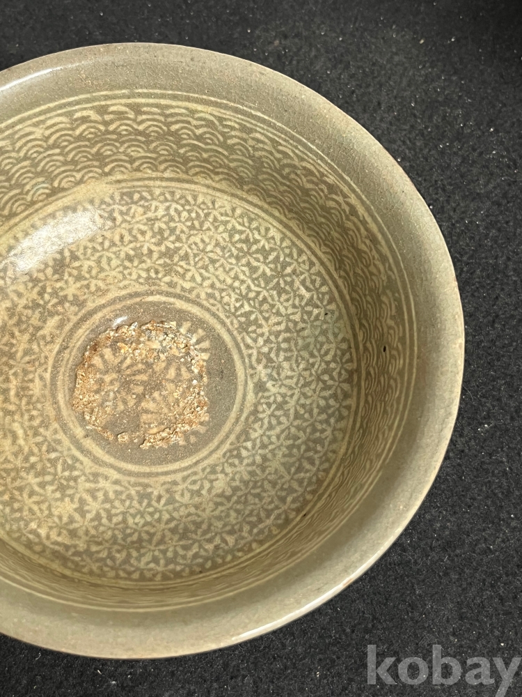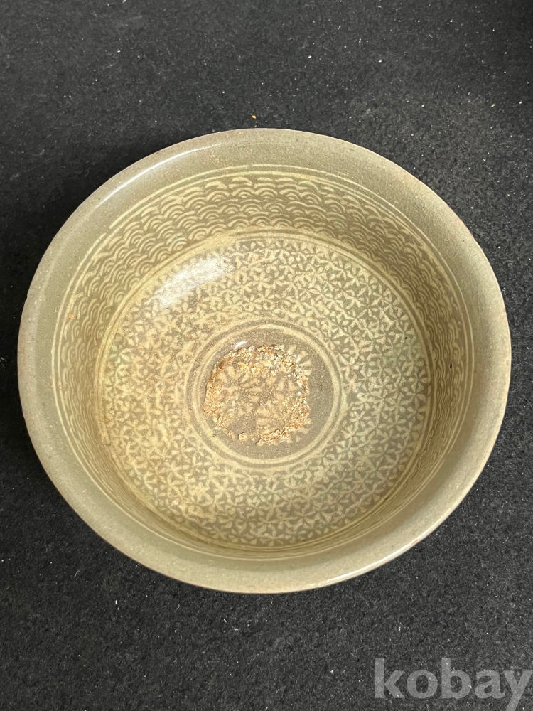 청자의 전형적 미감을 보여주는 완성도 높은 상감 인화문완입니다.