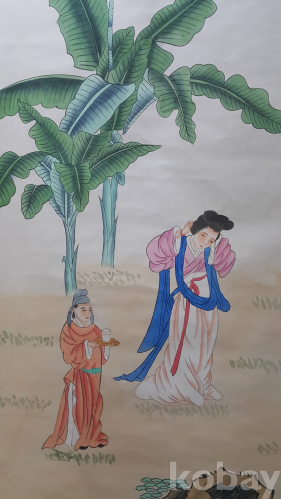 p-133.장대천의 미인도족자(수공으로그린그림)미감정