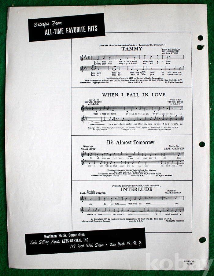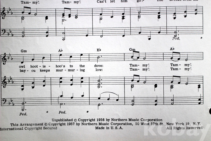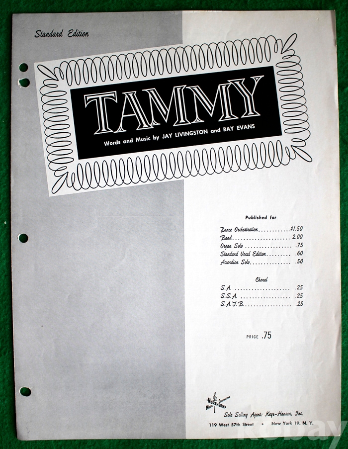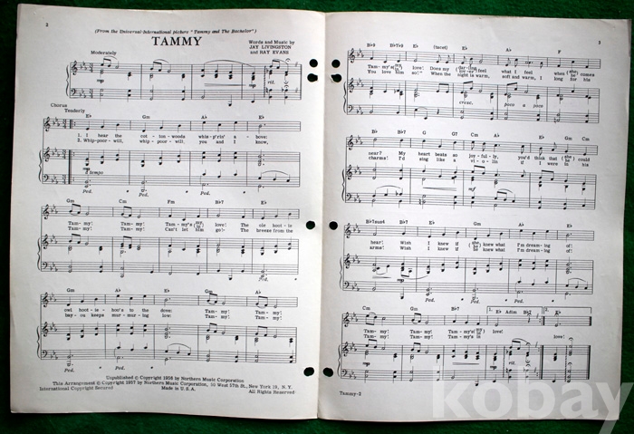 (오래된 피아노 악보) Tammy - 1956년. 미국발행...