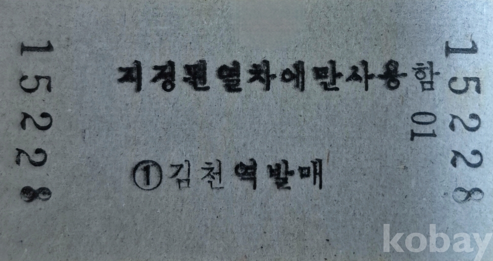 통일호 승차권 김천-대전 노소 입석권입니다.