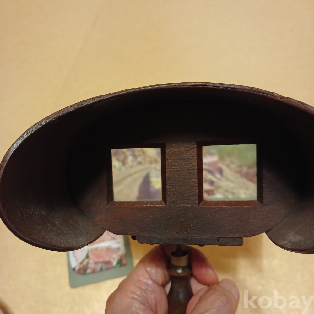 사진을 꽂아 앞뒤로 움직여 핀을 맞추면 입체로 보입니다ㆍ 초기 뷰입니다 상태 아주좋으며 사진은 풍경사진 2장있습니다