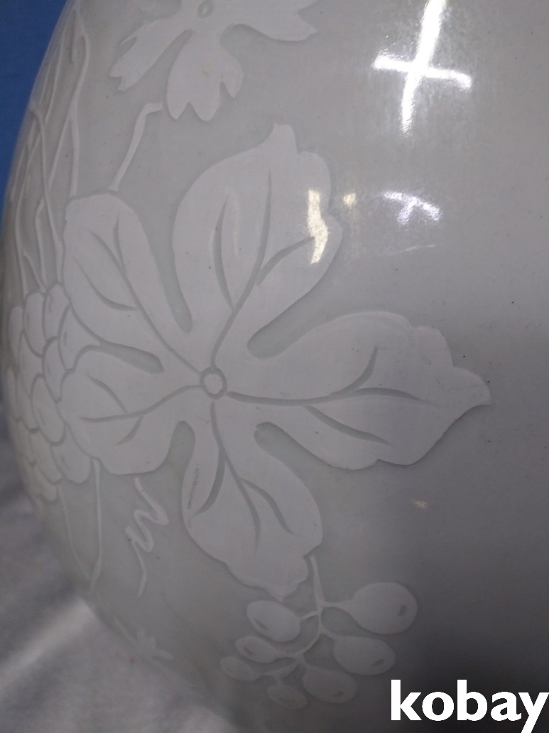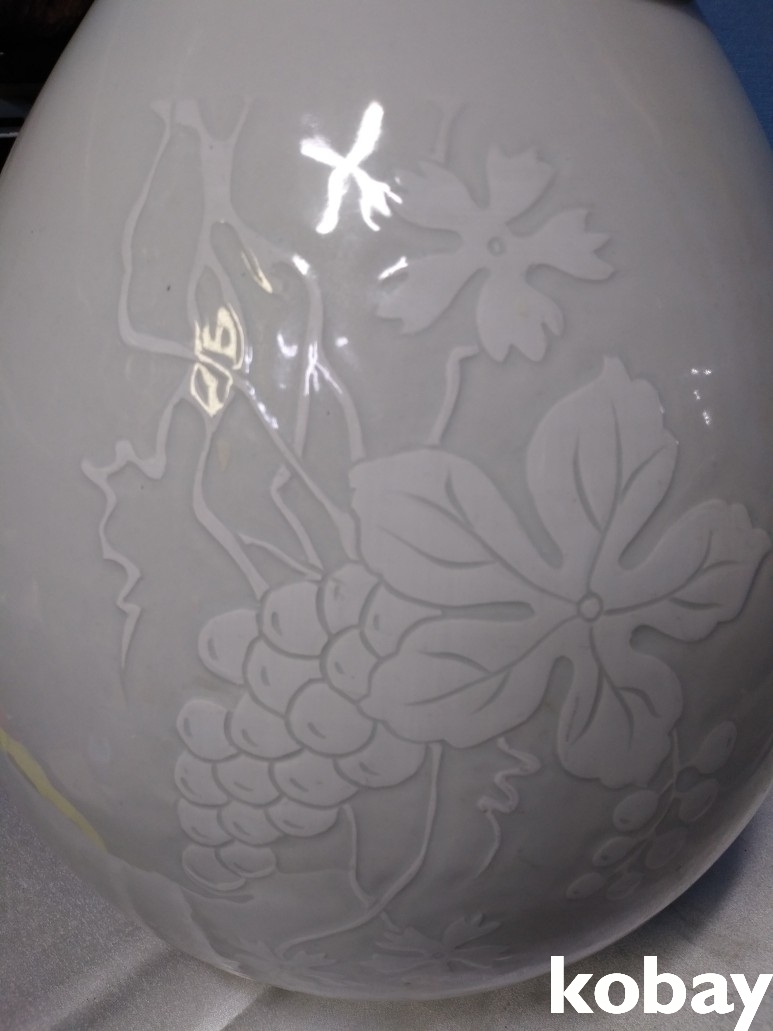 포도 문양이 손으로 만져지는 도자기 입니다.