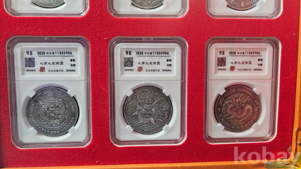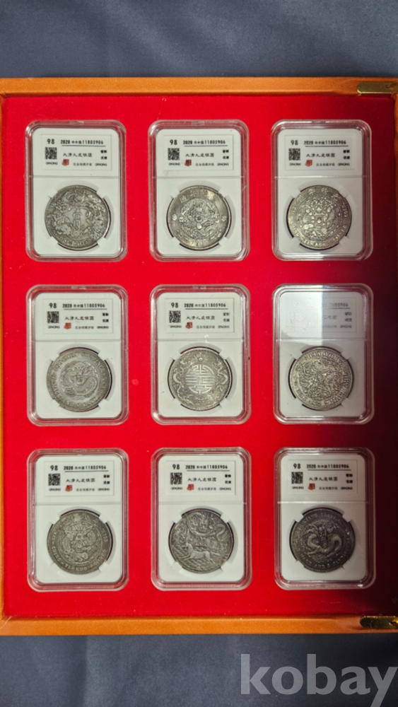 케이스안에 보관되어 있는 주화 9점 일괄입니다.