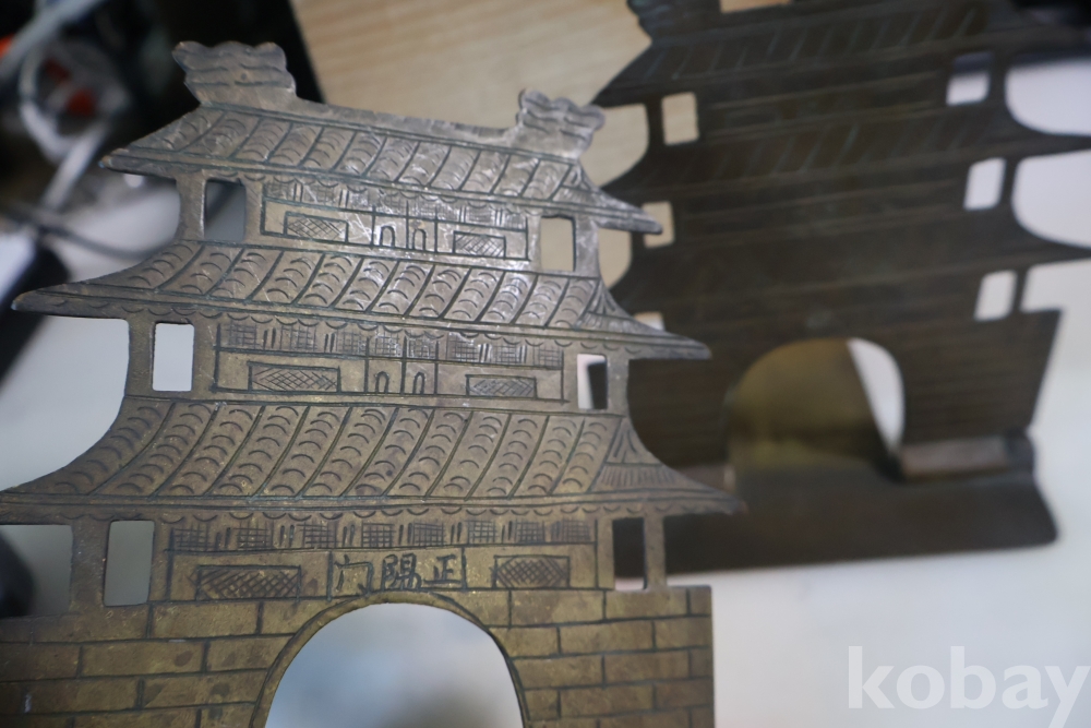 차이나 영어 낙관이 보이는 놋쇠 북 앤즈 이며 귀한 중국 북 앤즈 사진 참조 하세요 크리닝 전 임니다