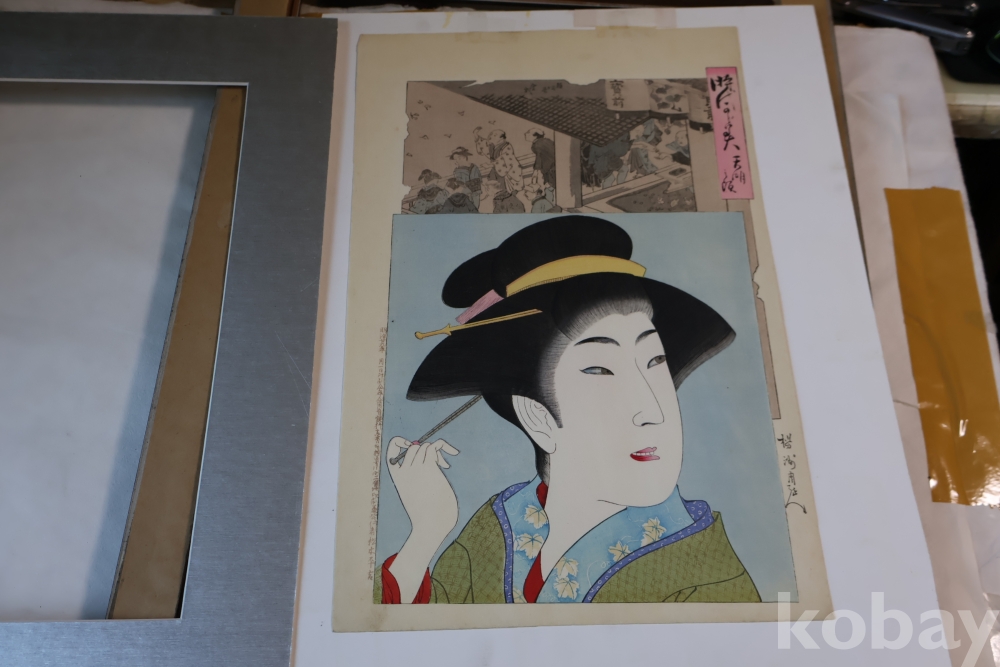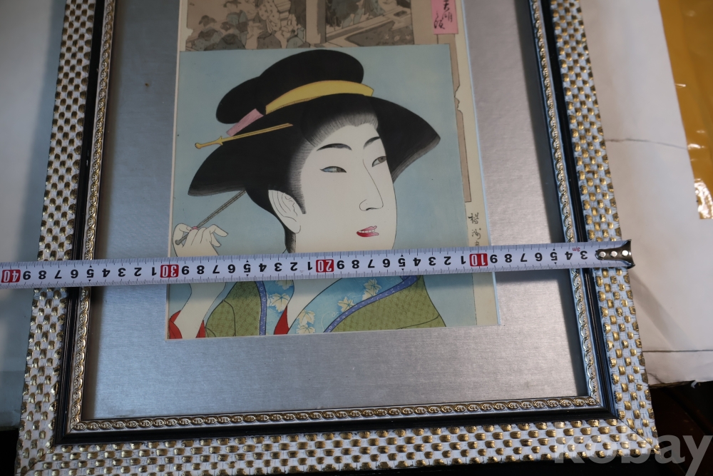 섬세 정교 우아함 본홍색감의 얼굴 처리 등등 전세계적인 수집목판화 이며 제작 년도가 보이는 명화 임니다 치가노부의 명작 미인 목판화 원본 Artist: Chikanobu Yoshu (1838-1912) 액자 역시 이태리 액자를 가진 명화 임니다