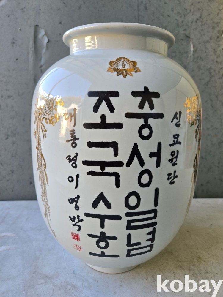 충성일념 조국수호 글씨 도자기 입니다.