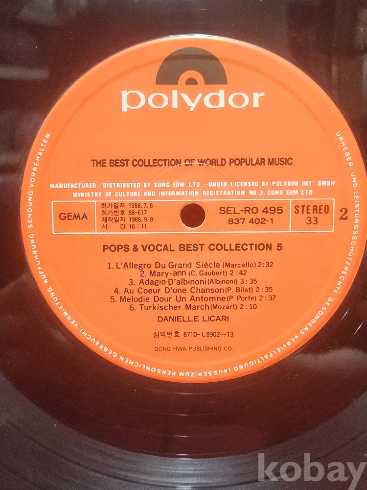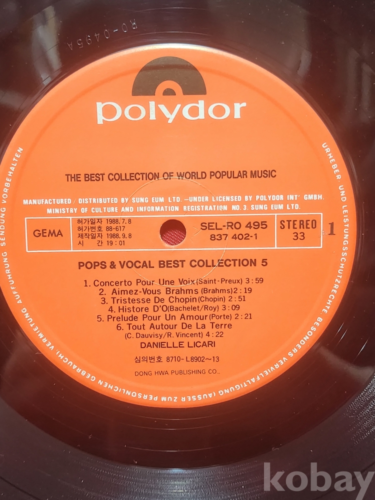 1988년 作 다니엘 르까리 (Danielle Licari) 한글표기 엘피판입니다