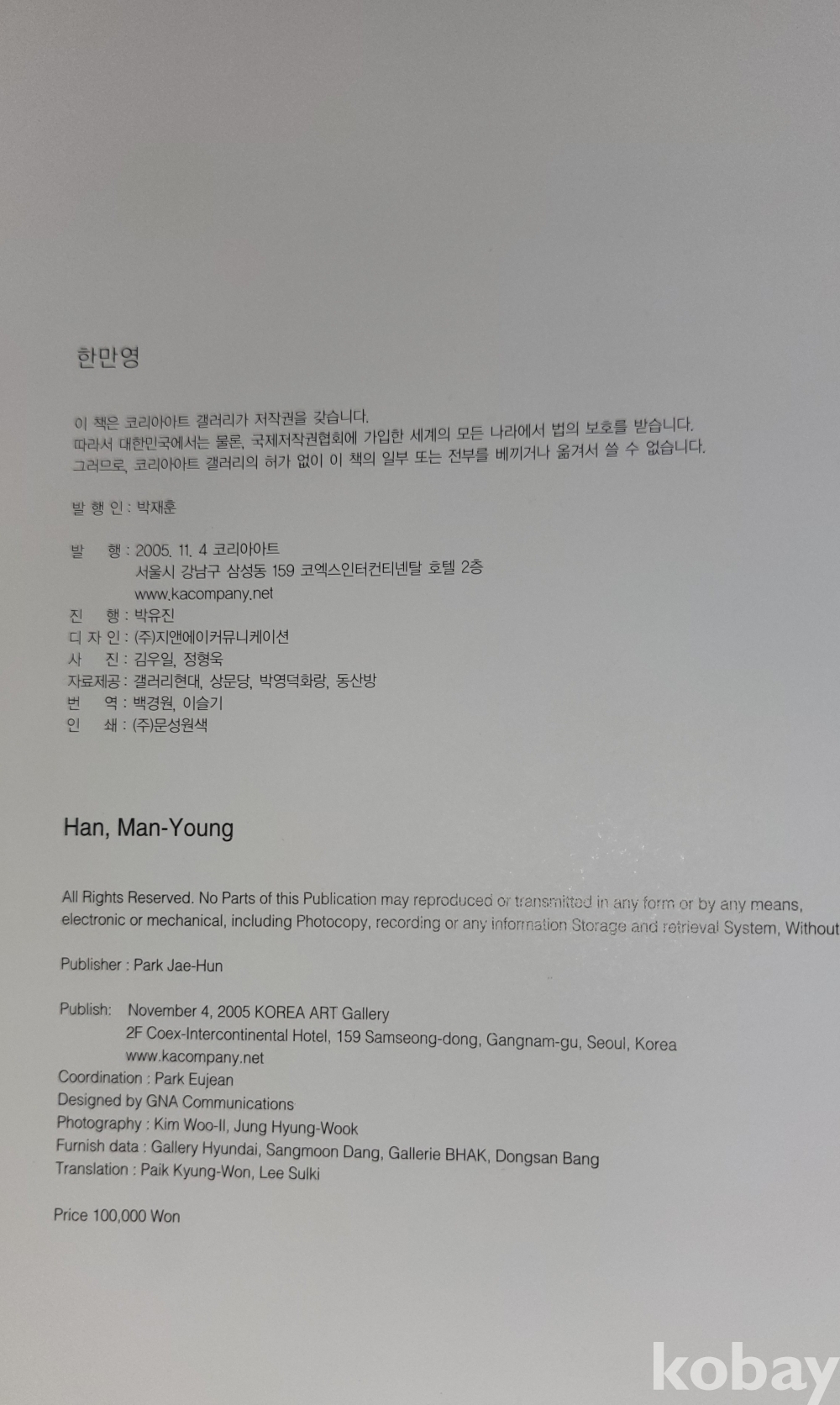 유명 서양화가 한만영 직접그린 그림과 친필 사인이 쓰여진 2005년 발행된 화보집입니다,