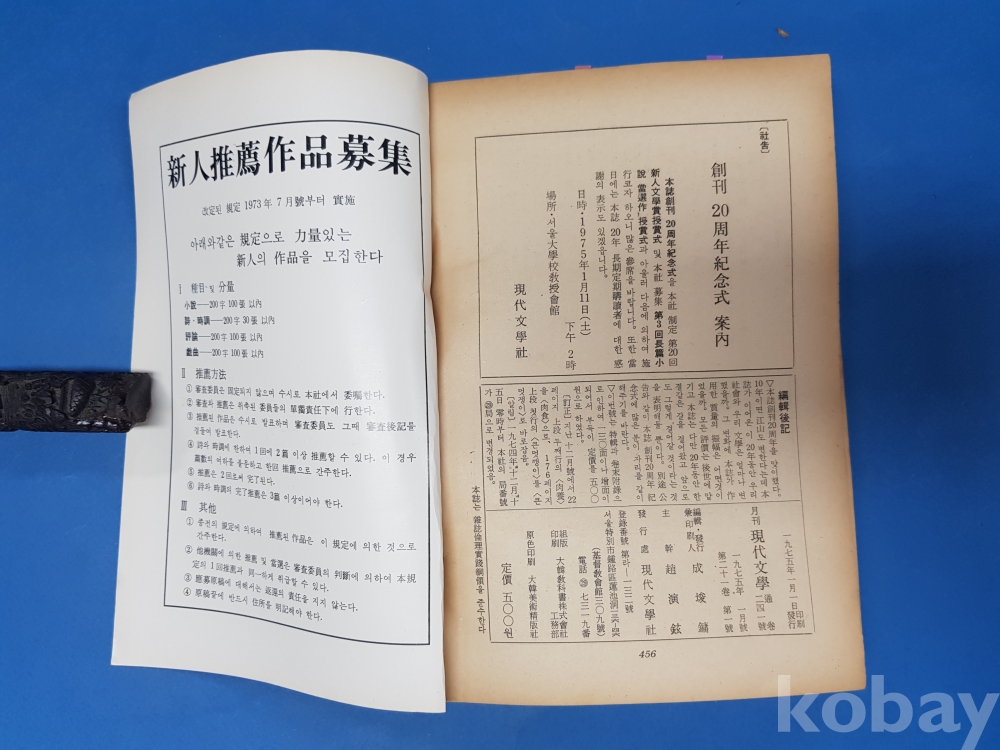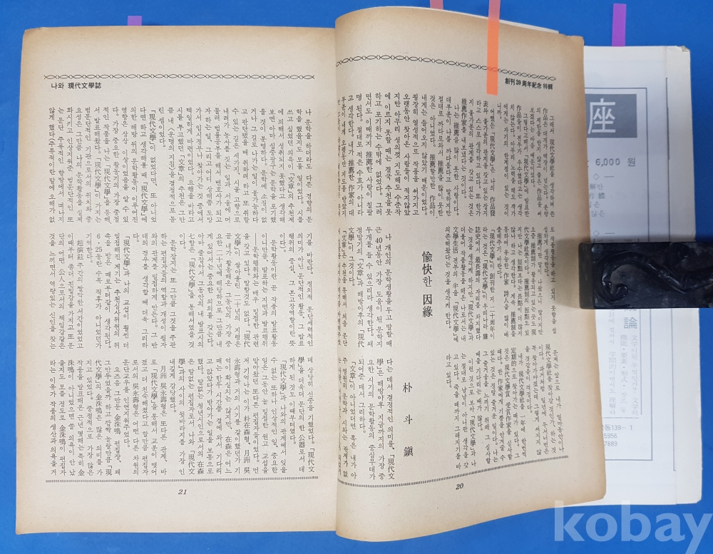 ▶ 朴斗鎭의 글 “유쾌한 因緣,水石列傳(續)Ⅵ”이 실린 現代文學 1975년 1월호, 창간20주년기념 특집, 월간 현대문학,456쪽
