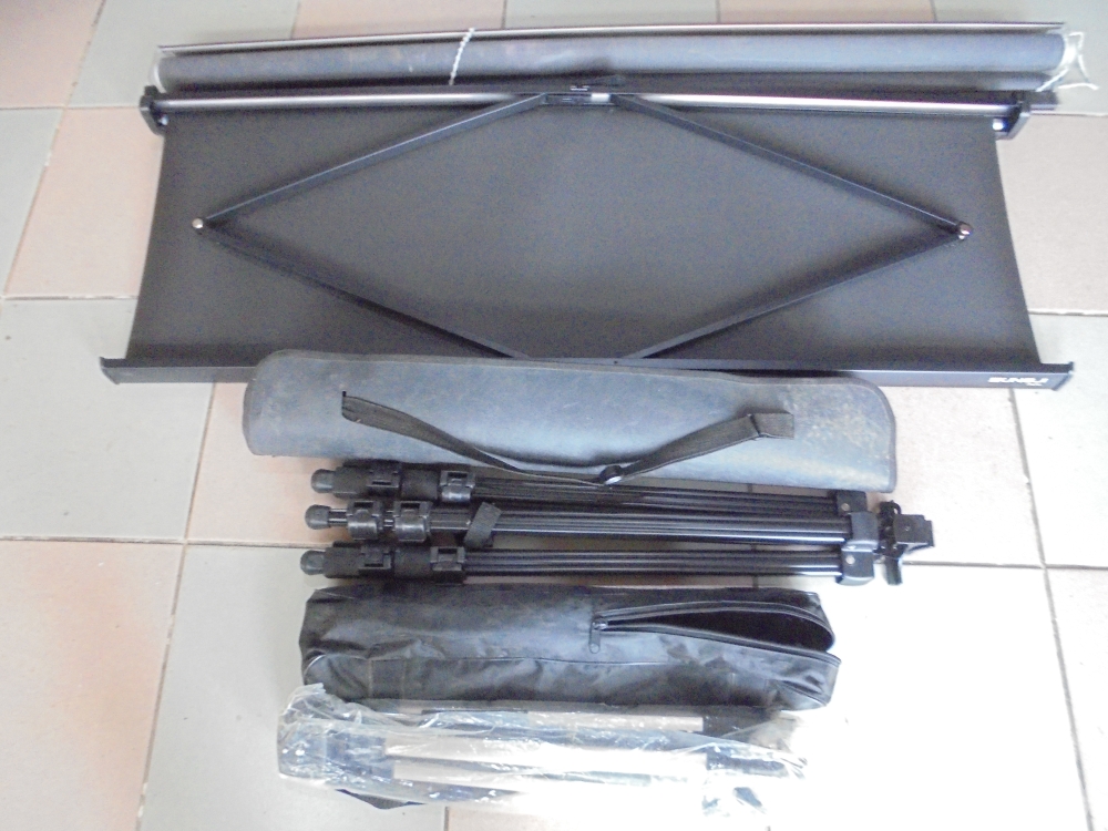 전문영사기 화면비추는것으로 커텐도 겸하면좋은 고급품1점과 줄당겨 줄구고 늘리는 자동커텐 1점 카메라등 비디오 다리로 사용하는