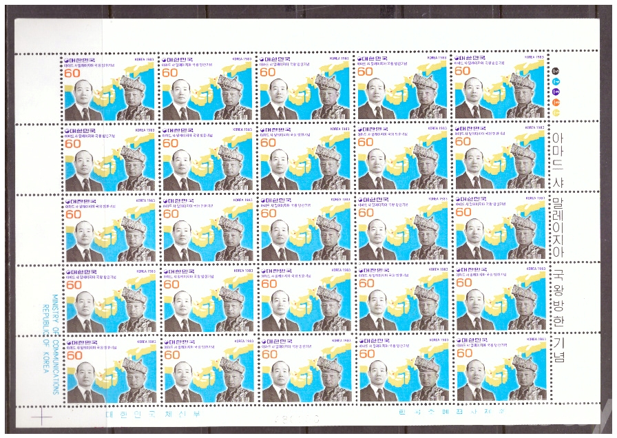 (한국전지) 1983.3.22 아마드 샤 말레이지아국왕 방한 sheet of 25 MNH