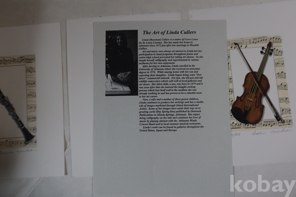 에칭 판화 3 세트 이며 화가의 약력이 보이는 명작 임니다 linda cullers