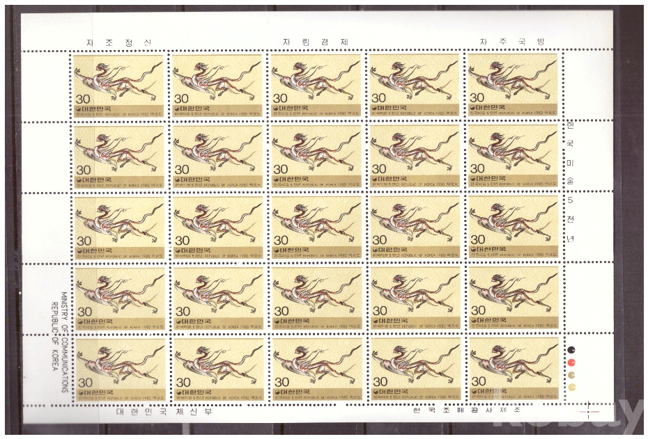 (한국전지) 1980.8.20 한국미술 5000년-백호도 sheet of 25 MNH