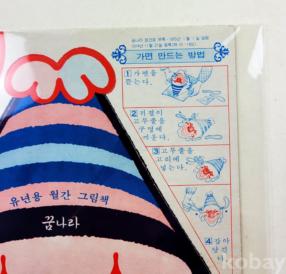 물 품 명 | 창간호(부록있는 희귀본) / 꿈나라 '75 1월호 & 창간호 부록 : 피에로 가면(미사용) / 1975년 / 어깨동무 : 육영재단 |