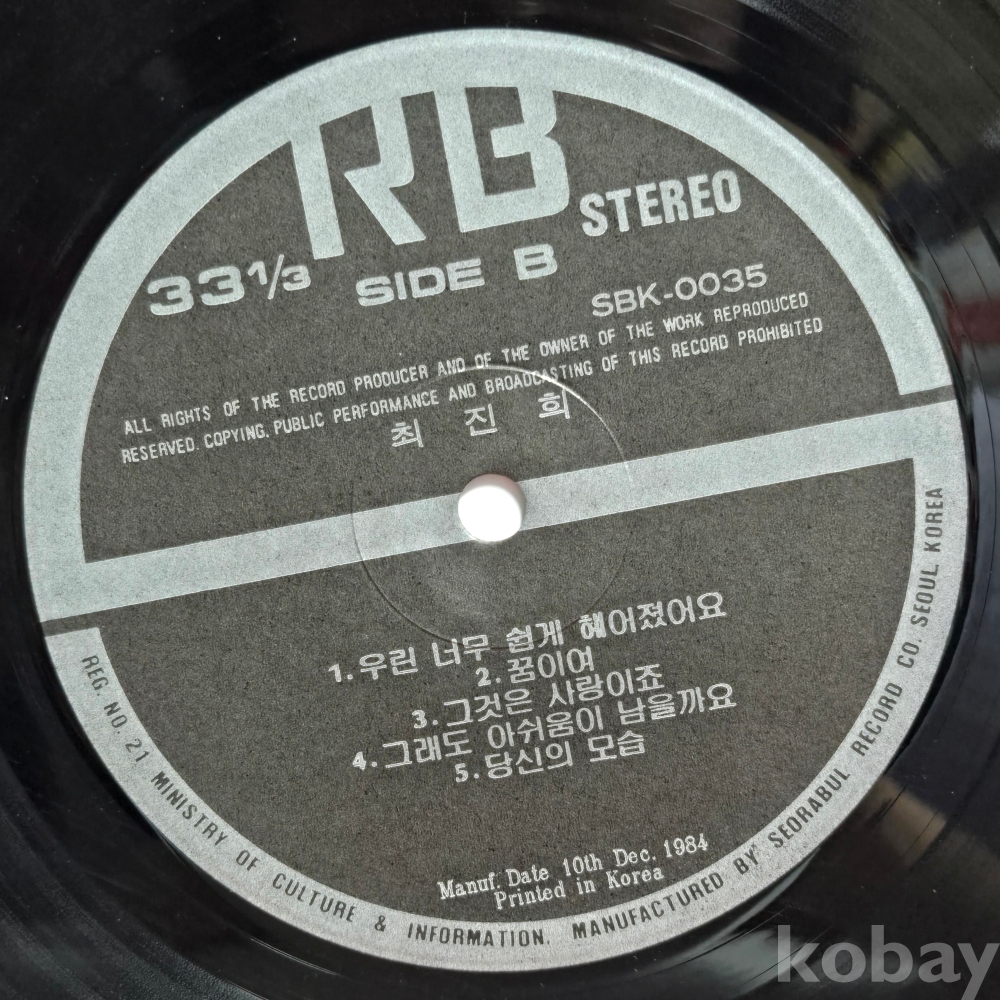 | 자켓상태 | EX : 약간의 마모, 모서리 찢김 존재 | 음반상태 | EX : 재생에 영향 없는 가벼운 기스 존재 | 발매정보 | 초반 | 가사지여부 | 무 |