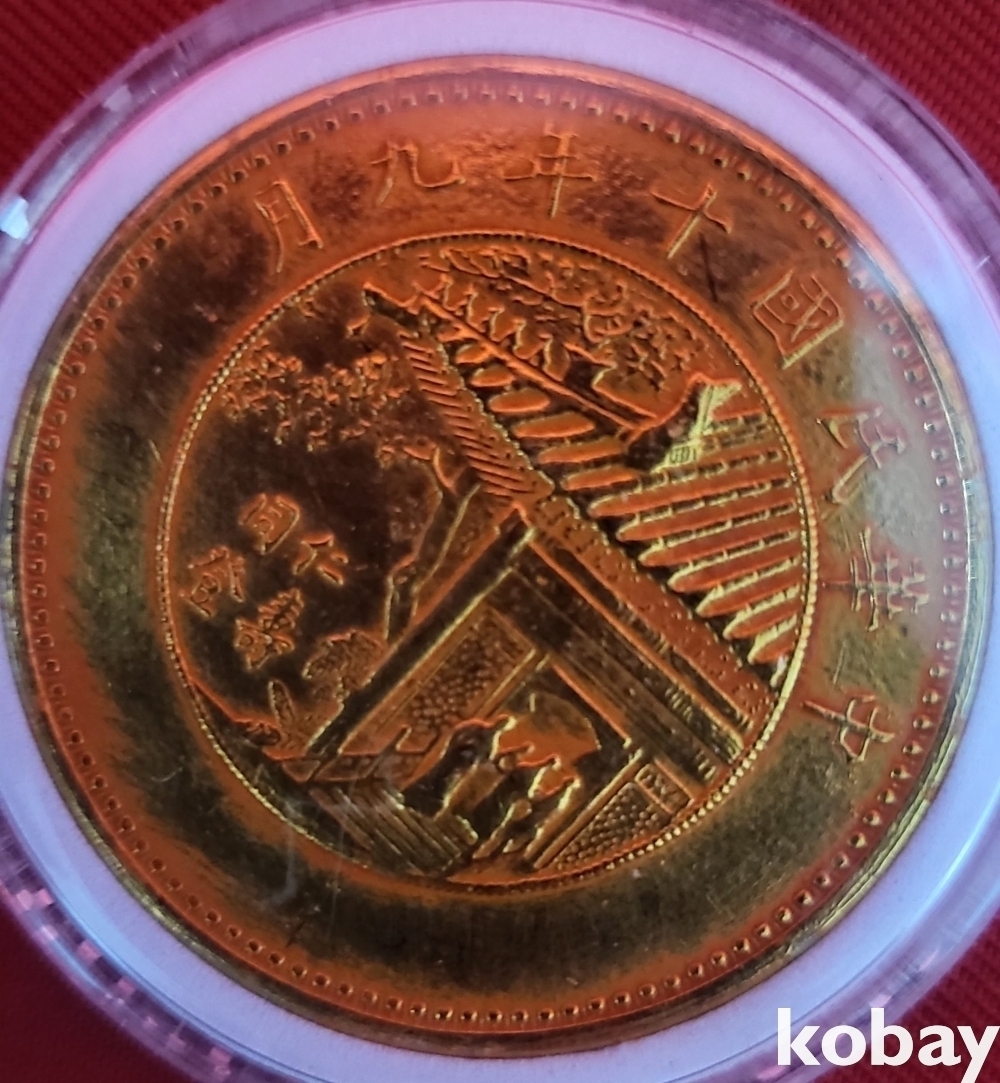 중화민국 10년9월 금색 기념패 입니다,미감정이기에 진위와 성분은 확실하게 모름니다,