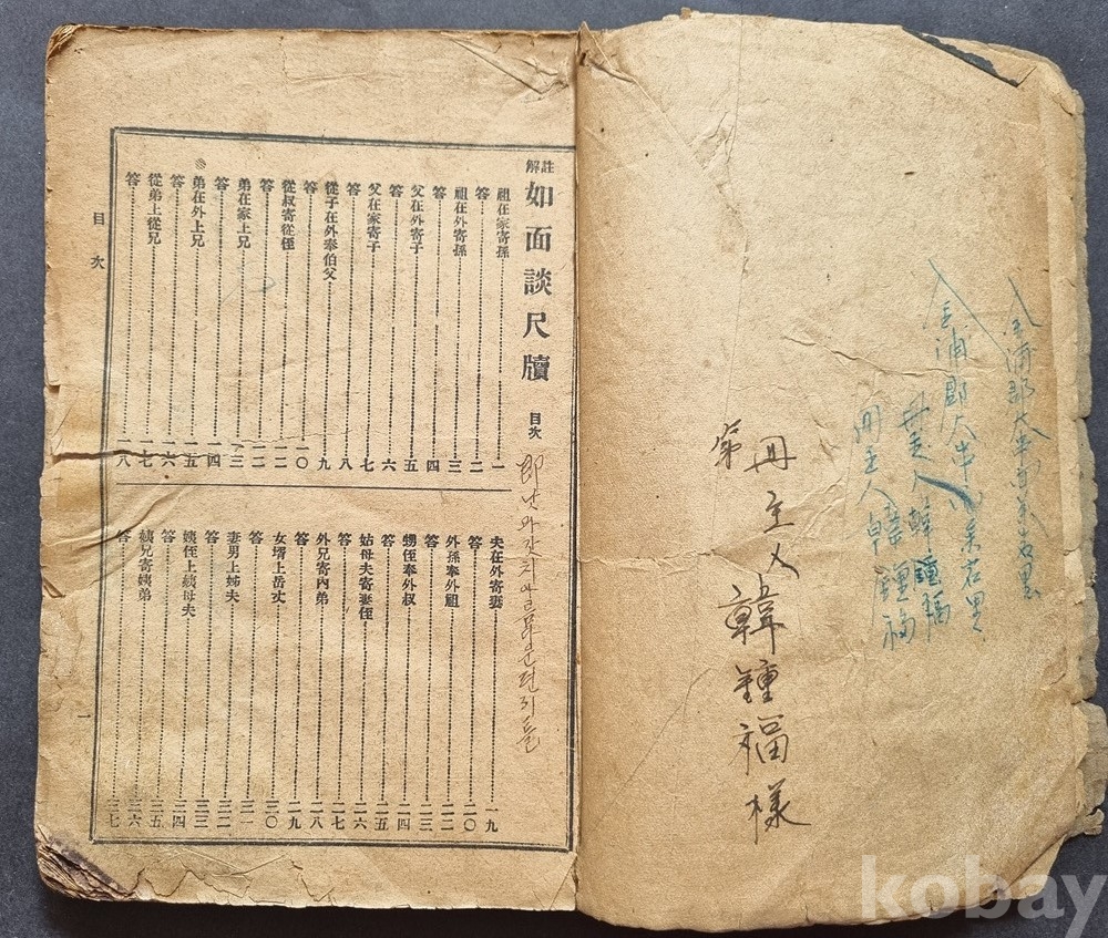 상태: 표지에 당시 소장자의 성함(한종복 樣)과 메모가 남아 있으나,