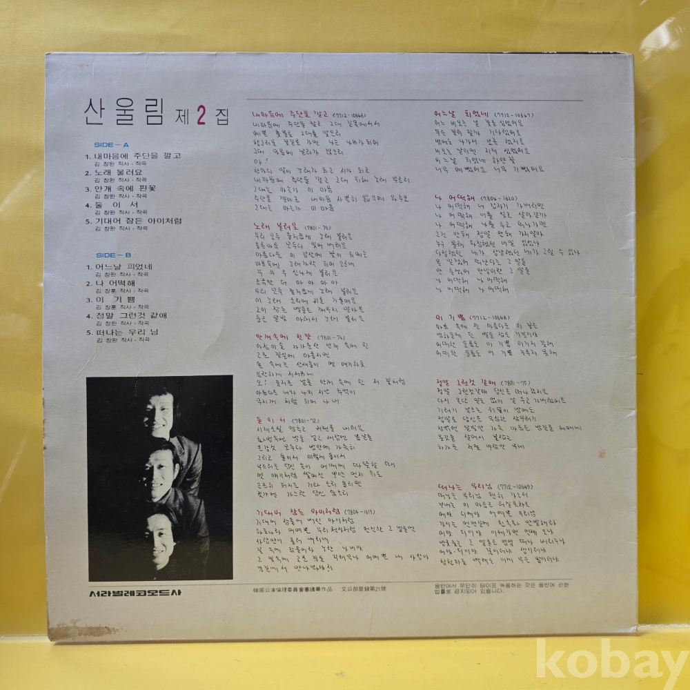 | 자켓상태 | EX : 약간의 마모, 모서리 찢김 존재 | 음반상태 | NM : 개봉했으나 미사용급, 스크래치 없음 | 발매정보 | 초반 | 가사지여부 | 무 |