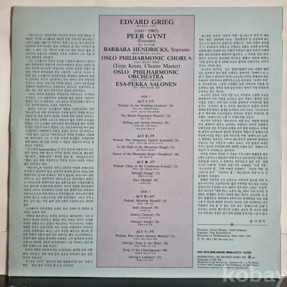 그리그 Grieg* / Barbara Hendricks / Oslo Philharmonic Orchestra* / Esa-Pekka Salonen
