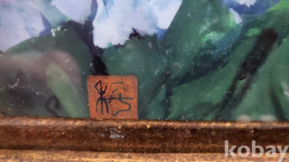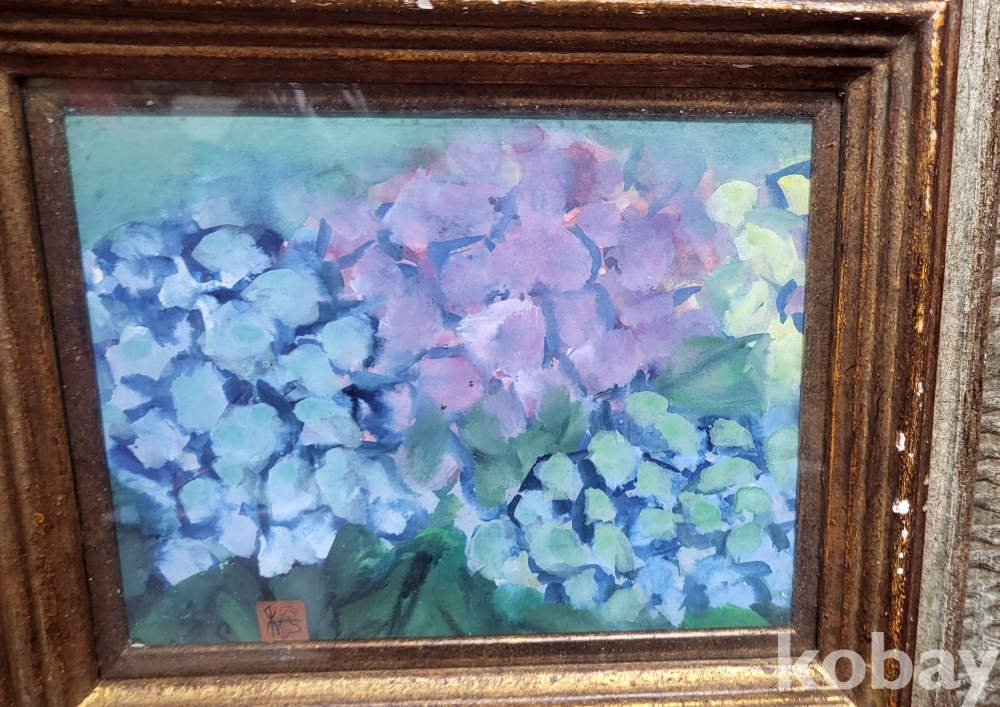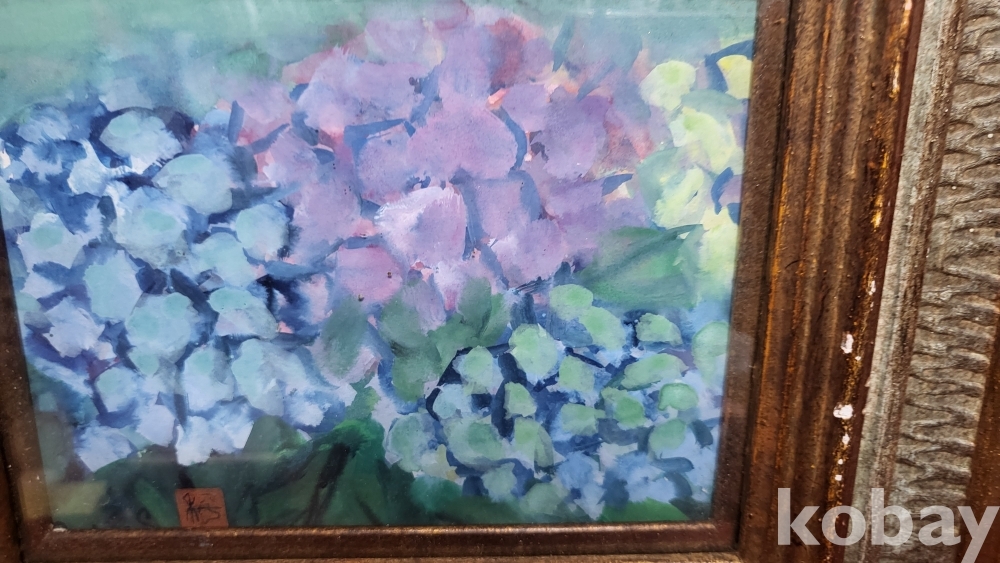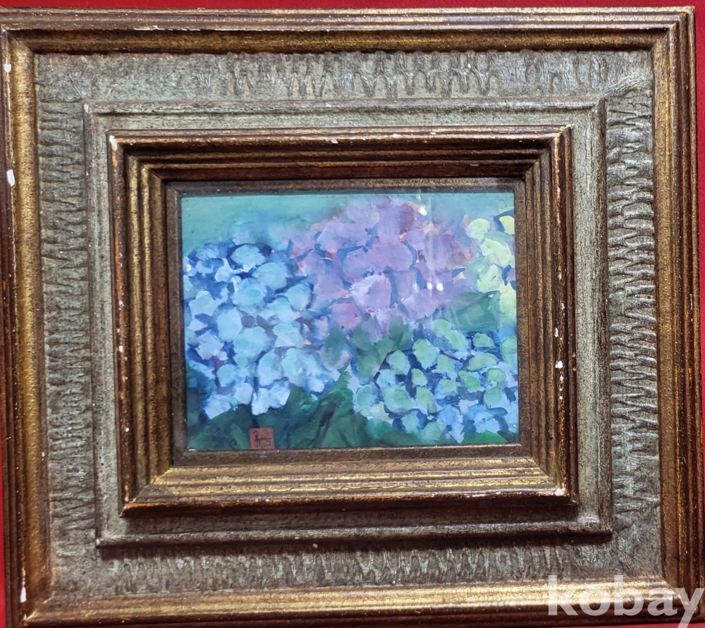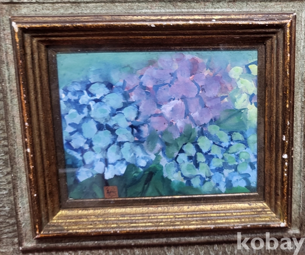 작가 사인이 보이는 최고급형 액자에 담겨진 수국 그림입니다,