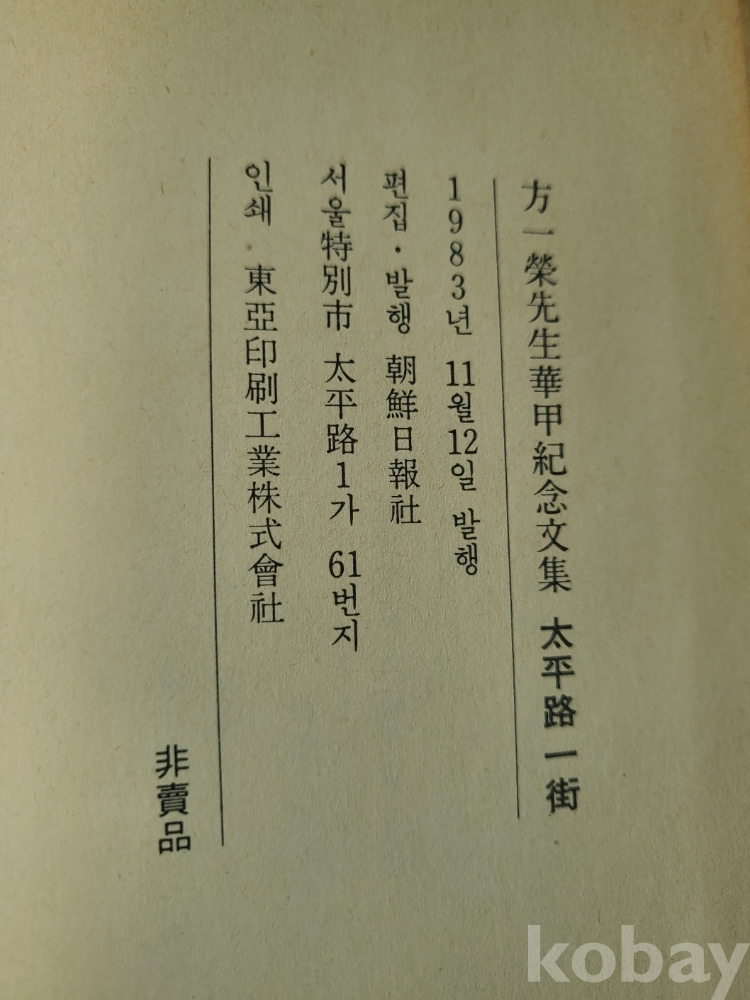 1. 태평로1가(방일영선생화갑기념문집), 조선일보사, 1983년, 553쪽, 상태 상, 사진 참조