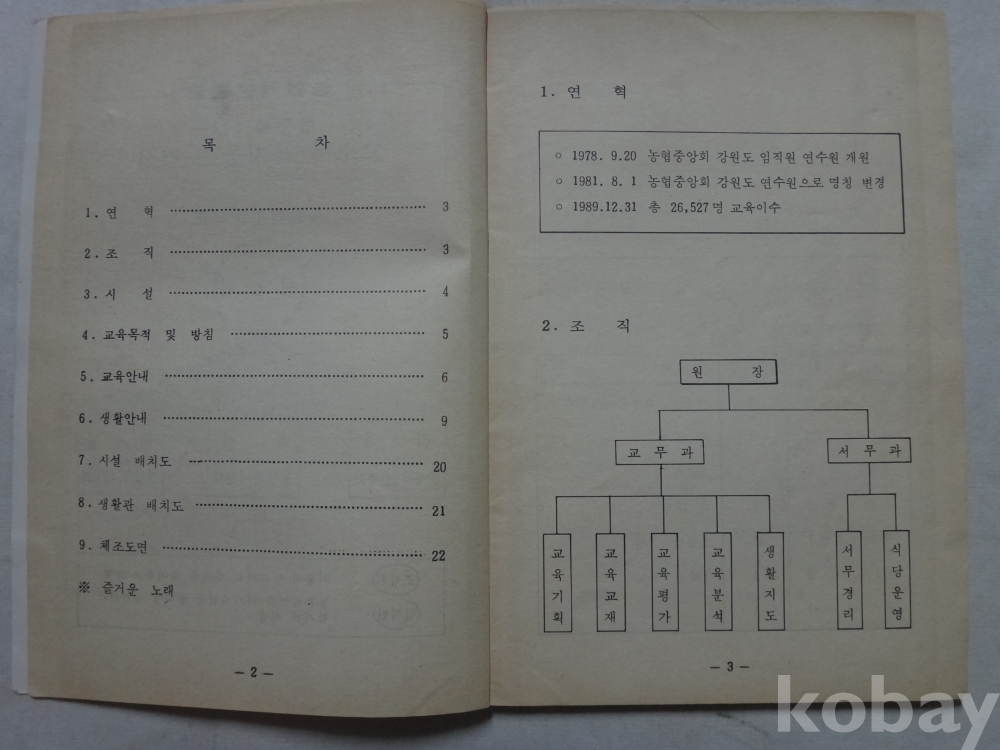 농협중앙회 강원연수원 - 연수교육안내 (1990년)