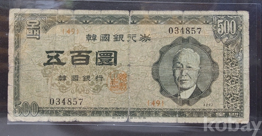 -대한민국 4292년 우이박 500환 사용제이며 환권으로 환권자체는 아주 귀한 지폐이고 완벽하지는 않습니다.