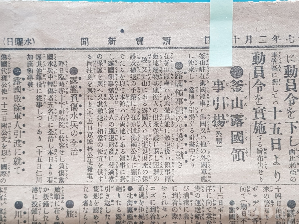 러일전쟁 당시 부산주재 러시아영사 관련 기사 이다
