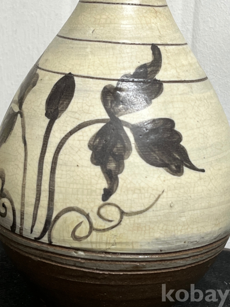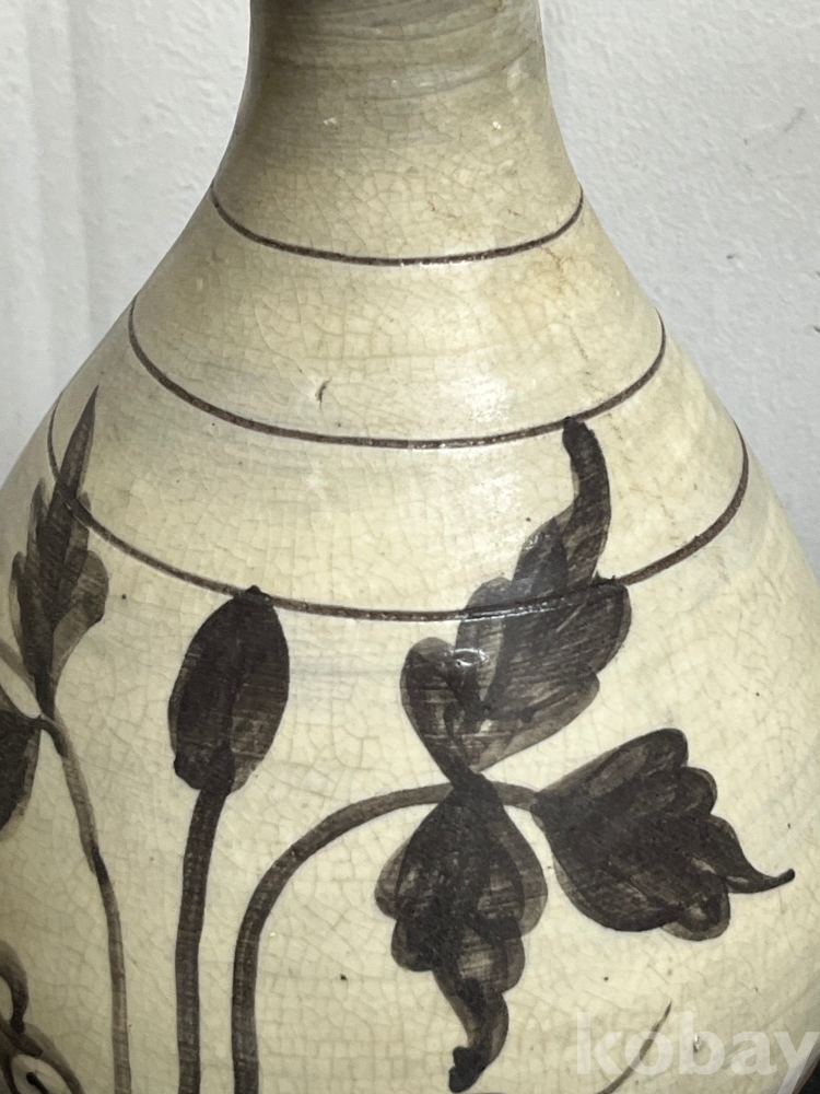삼엽문 아래 줄기쪽에 작게 수리된 곳이 있으며, 구연부 파손이 있습니다.