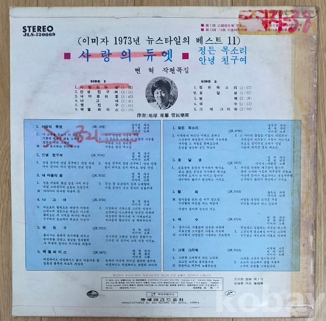 | 자켓상태 | EX : 약간의 마모, 모서리 찢김 존재 | 음반상태 | EX : 재생에 영향 없는 가벼운 기스 존재 | 발매정보 | 초반 | 가사지여부 | 무 |
