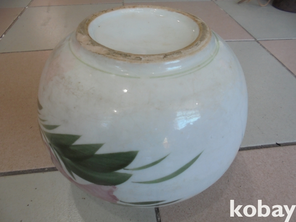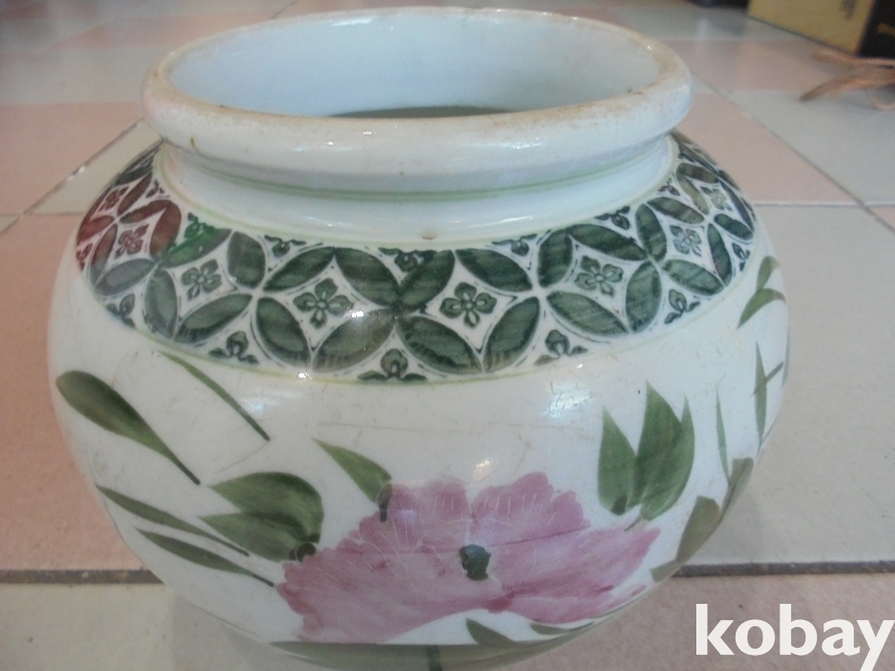 왜정시대 잘살던집에서 사용하던 두텁고 무겁고 큰 특히 붉은색이들어간 귀하고 비싼 완벽한 목단항아리