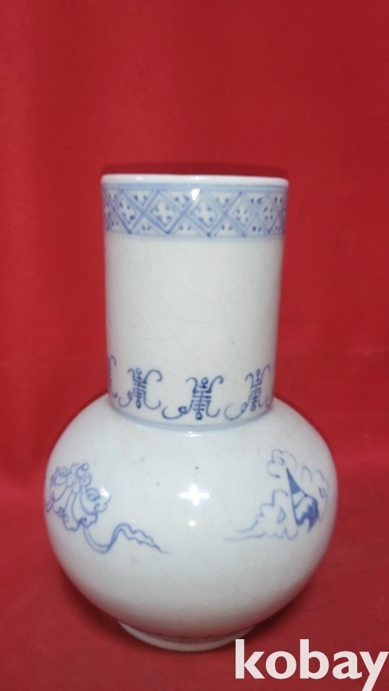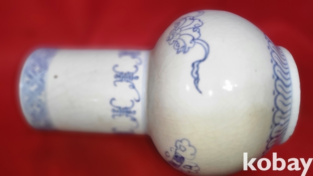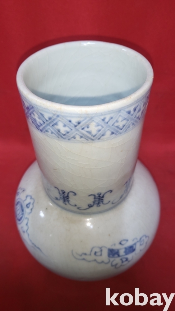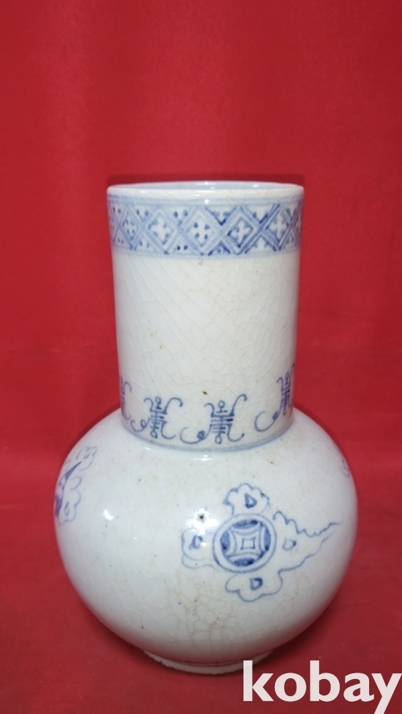 1세대 도예가 호산 안동오 作 청화백자 칠보문영 광구병입니다,