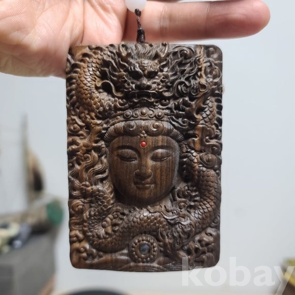 은은한 나무냄새가 나는 침향나무를 정교히게 조각한 불교 패입니다 미사용으로 상태 좋습니다