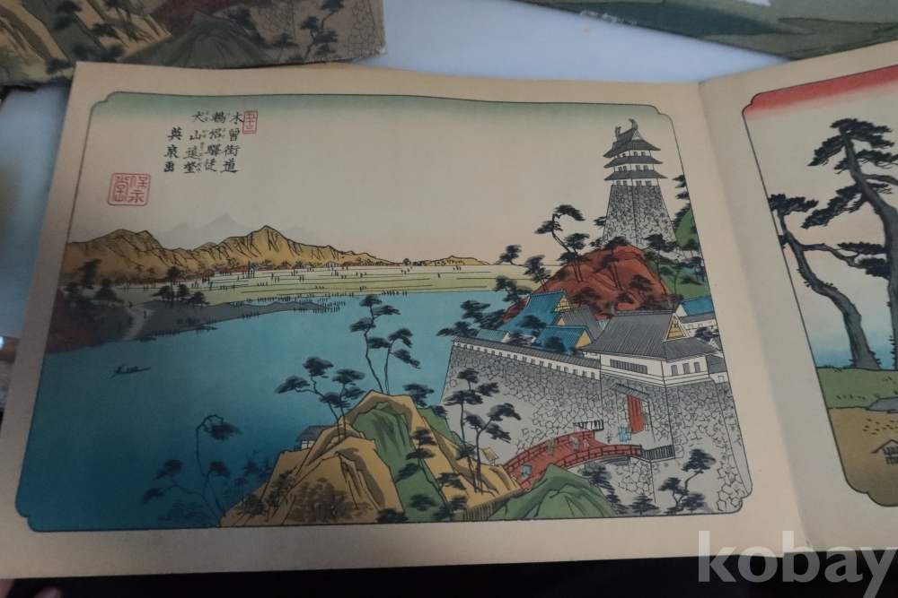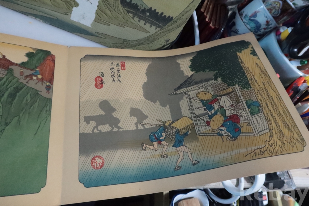 히로시게 에이센 합작 동해도 그림 임니다 카바는 분리 되엇고 화가의 명화 를 중심으로 소화 12 년 1937 제작 이며 그림 2 는 분실 임니다 한점 한점 분리 하여 액자가능함니다 전통 일본 책 방식으로 만든 87년전의 서적 임니다