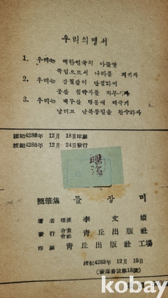 단기4288년(1955년) 발행된 들장미입니다,