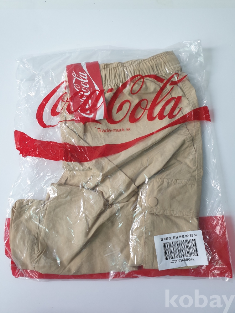 [천원경매] 4-225 코카콜라 카고 반바지(택있는 미착용제품, 바스락 거리는 소재, XL, 길이 47cm, 베이지 컬러)