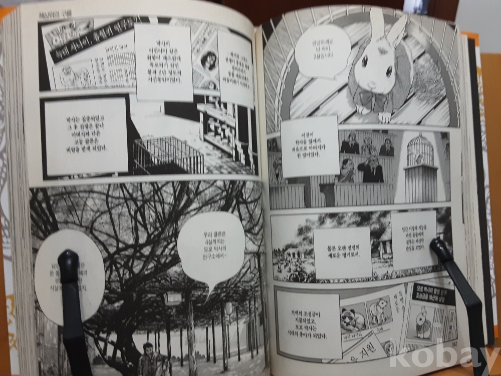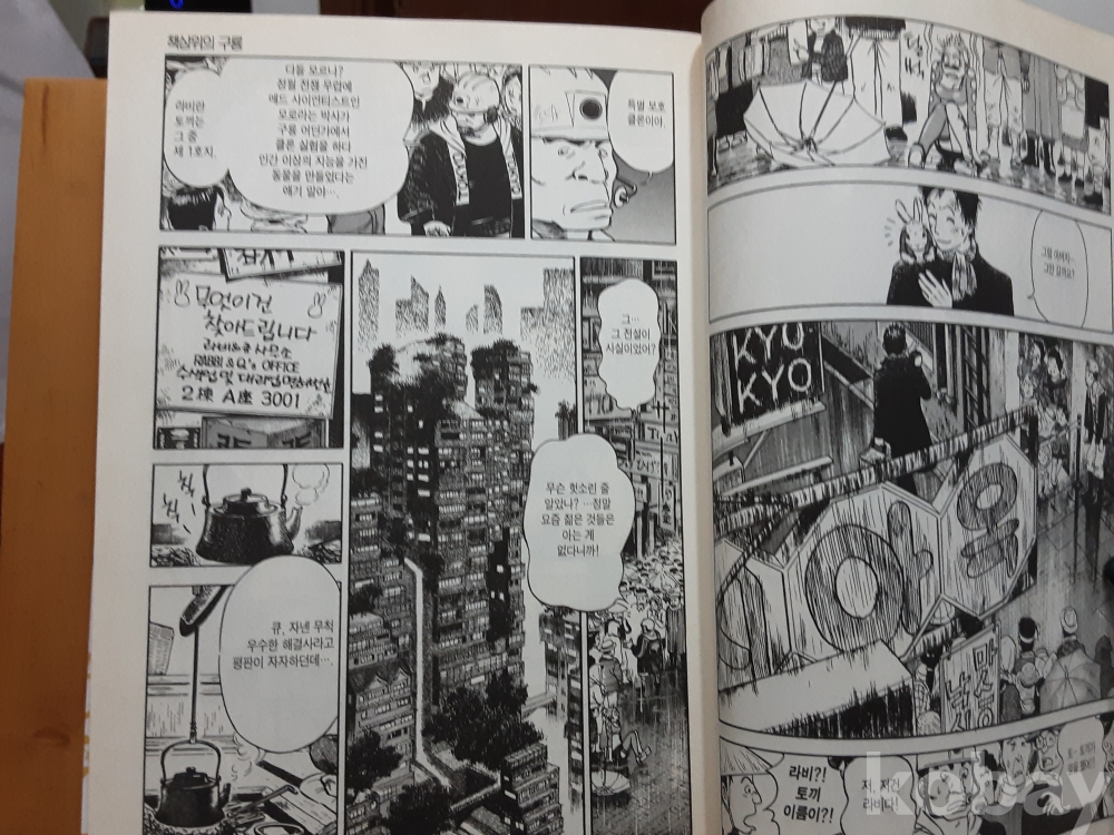 1. 2000년대 중반, 도쿄 네오 구룡. 그곳에 무엇이든 찾아주는 '수색업자'가 있다. 이름은 츠쿠에다 큐. 아버지는 인간의 말을 할 줄 아는 토끼 라비. 라비는 매드 사이언티스트 모로 박사에 의해 만들어진 클론 생물. 탁월한 묘사력의 신예 작가가 그려낸 네오 구룡의 악몽 같은 날