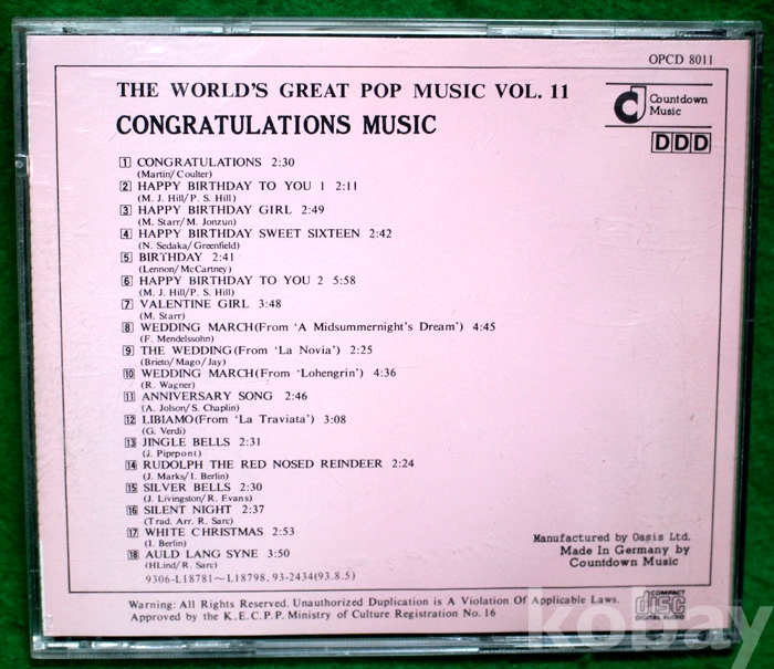(CD) World's great pop music Vol.11 - Congratulation / Happy birthday girl ..